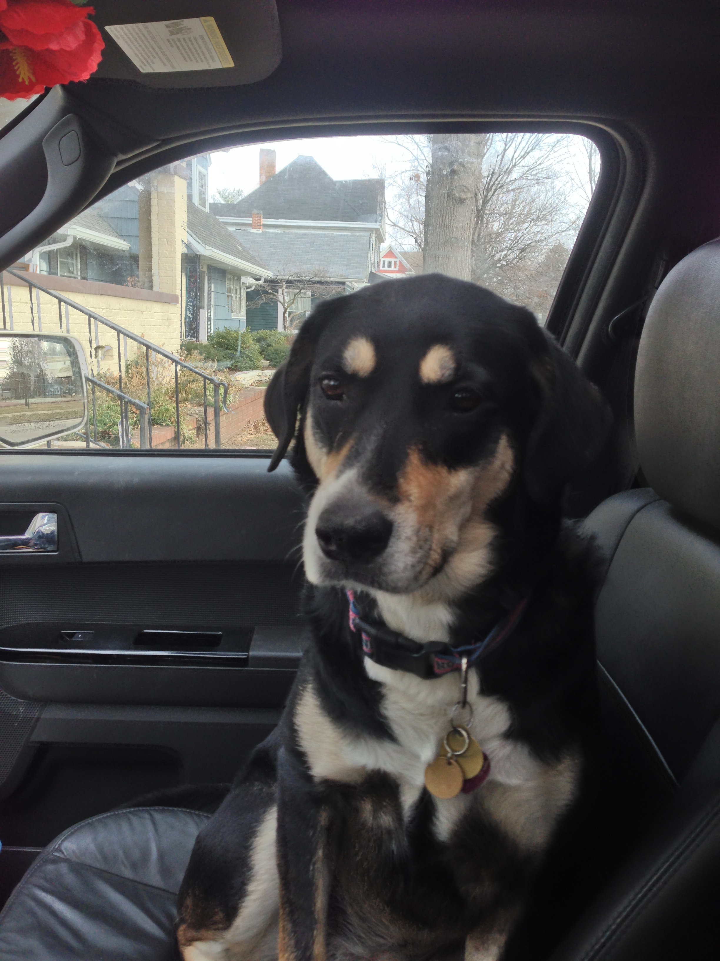 OK, we are sitting in the driveway in this picture. But the house is locked up, and we are in the car, so it counts as being on the road for purposes of this picture and post.