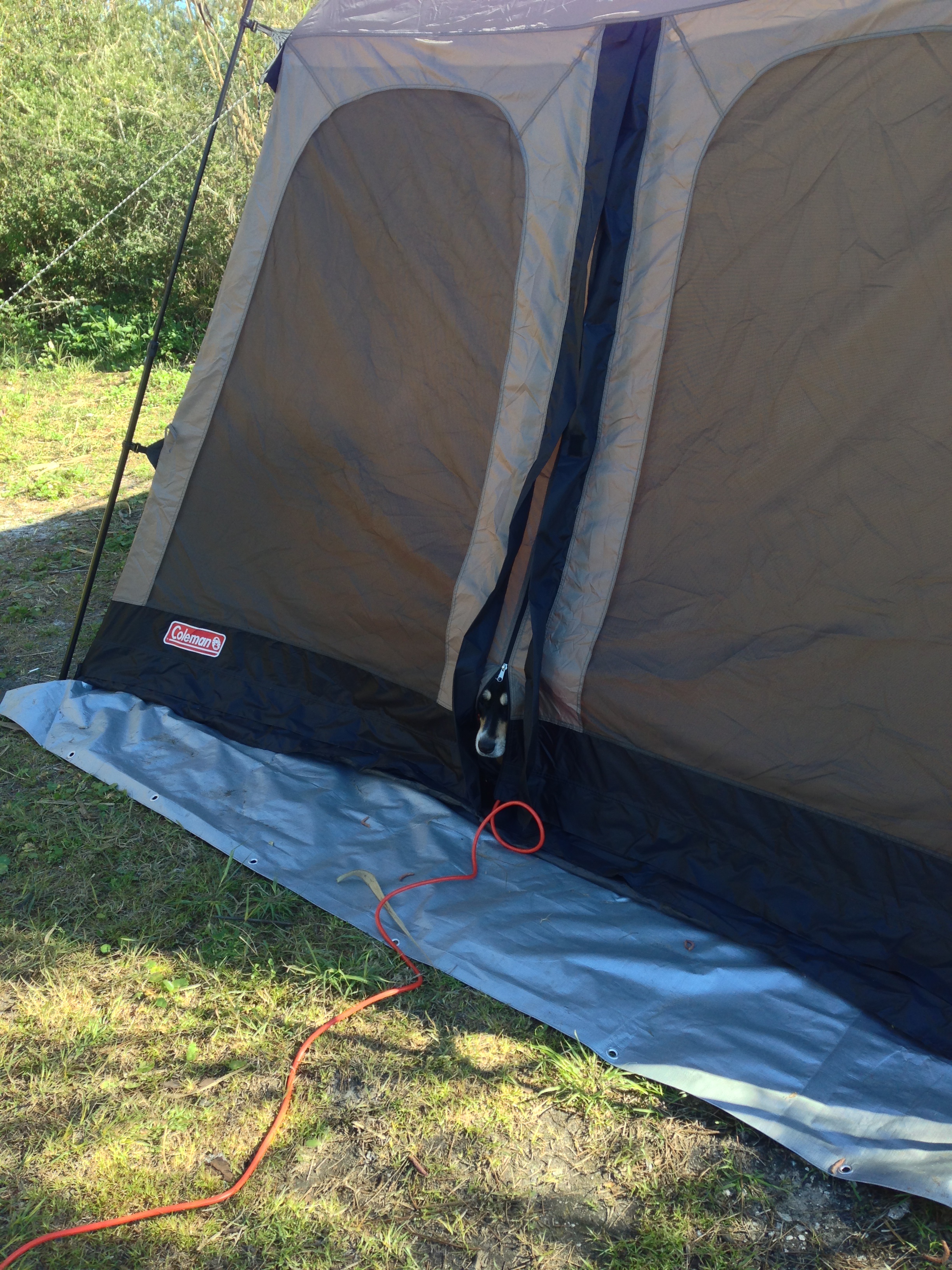 You would think that, having history of escapes, I would put Choppy in the car when I left her at the campsite, which is one of the few places she has yet to escape from (though I wouldn’t put it past her to figure it out). However, the other night, it was a bit warm, and I was just going to take a quick shower – I figured Choppy would be fine in the tent.