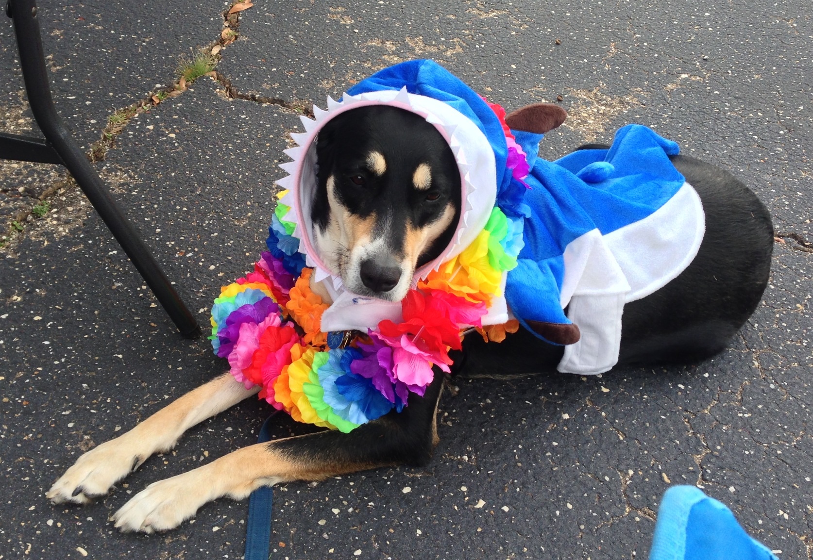 This concert, I brought Choppy – she sometimes goes tailgating at Notre Dame games, so I know she can handle at least some level of tailgating (though that’s a whole different sort of tailgating than Buffett). Thinking ahead, I even brought a costume for her.