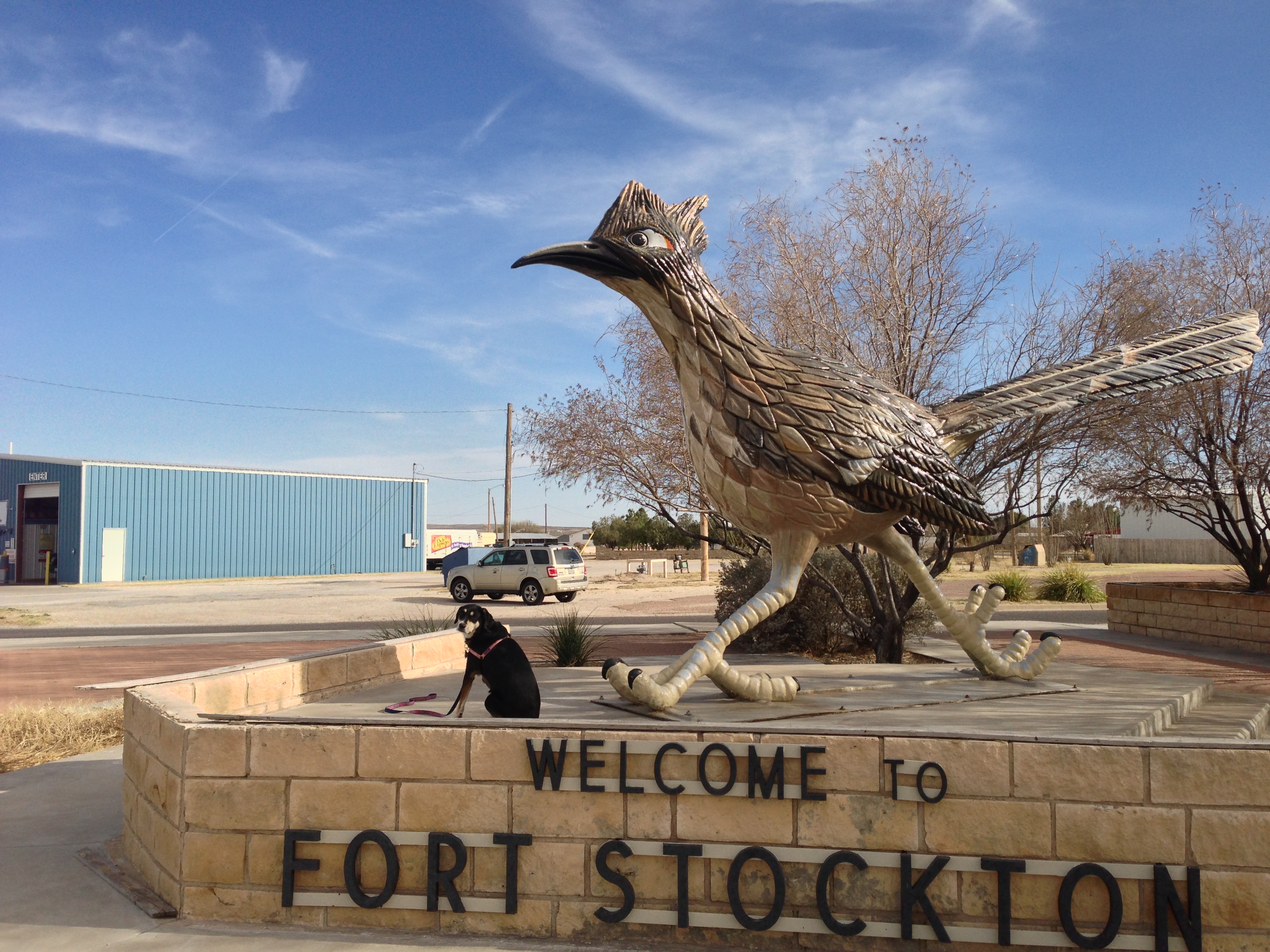 Right in the middle of Fort Stockton, there is a giant statute of a roadrunner. His name is Paisano Pete. As the Fort Stockton brochure informs me, “Paisano Pete, was erected in 1980 and declared the largest roadrunner in the world, at 11 feet tall and 22 feet long. Since that time a larger replica of a roadrunner has been constructed of recycled materials in New Mexico.” Remember this information, as it is important when looking at the next picture.