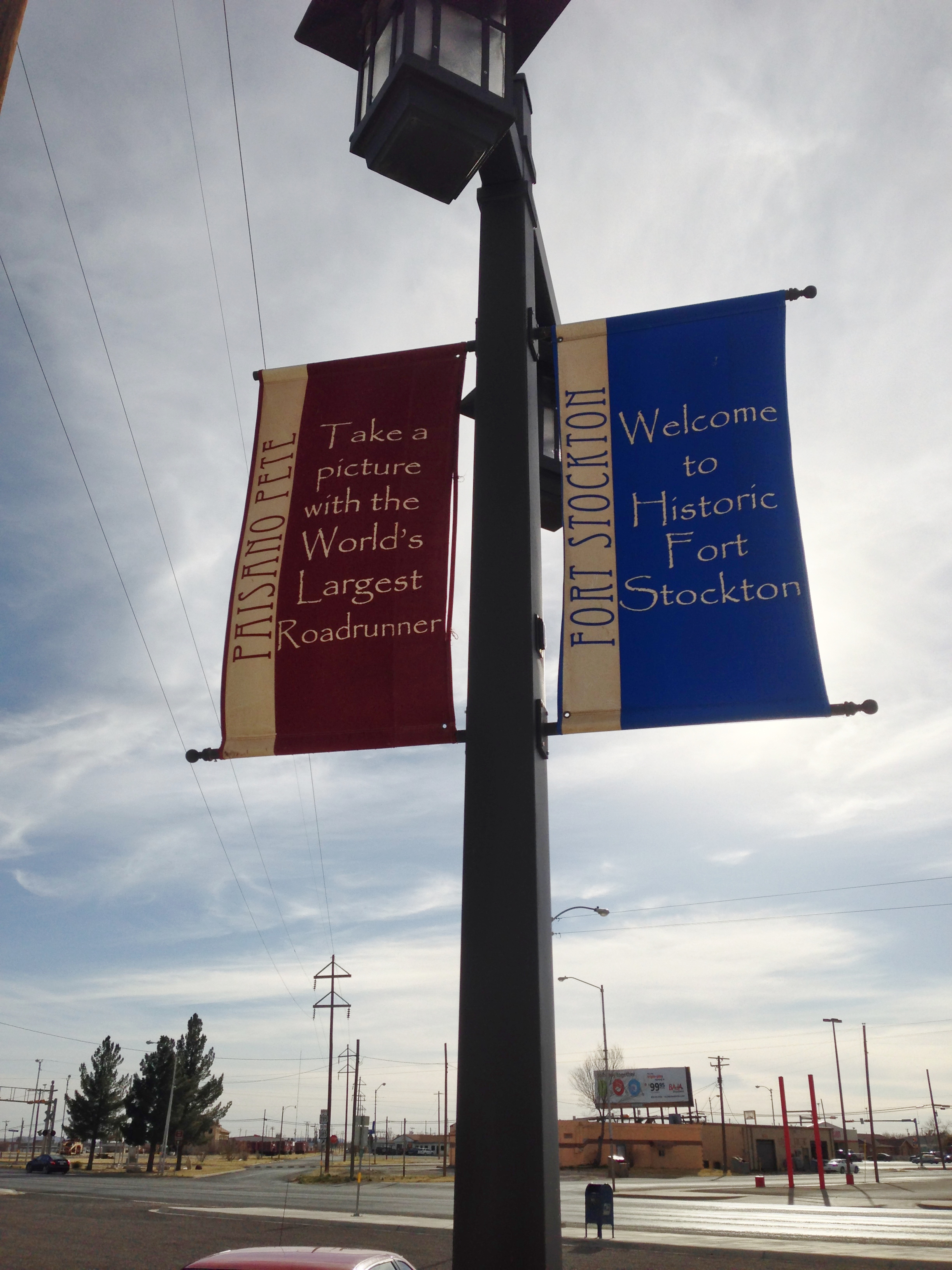 I spent the night last night in Fort Stockton, Texas. If you look on a map, you’ll see it’s pretty much in the middle of west Texas, with very little anywhere near it. It is the site of a spring (Comanche Springs), and has been a stop for travelers for many, many years. The spring no longer produces water all year long, thanks to the pressures on the aquifer from Fort Stockton and the surrounding area. In fact, when Comanche Springs began to dry up, it became the subject of a lawsuit that established the water laws in Texas.