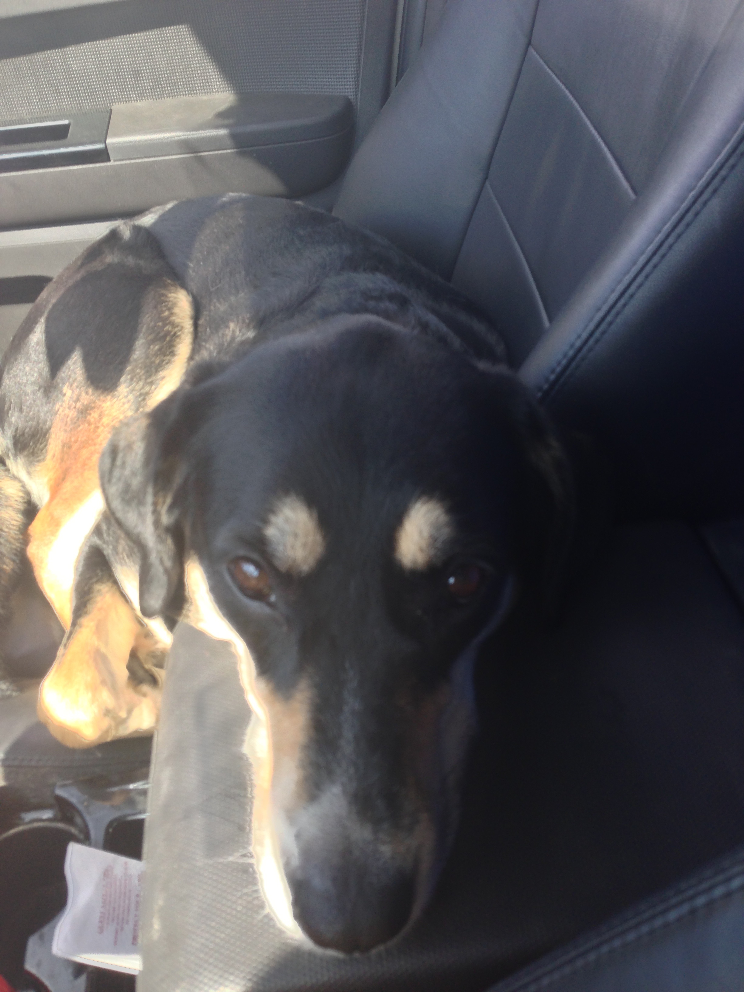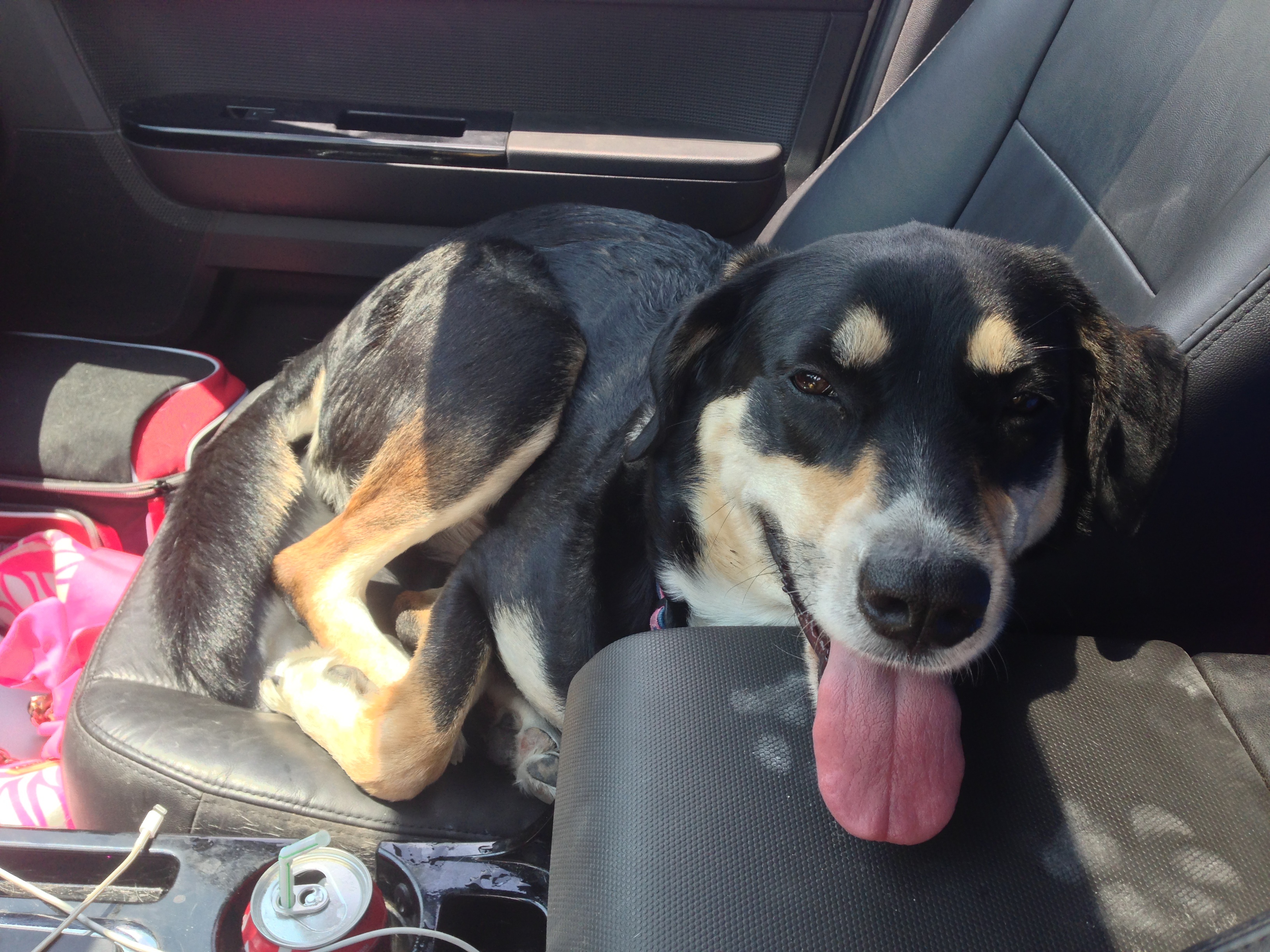 This? This is Choppy after our brief trek outside the car in the previous picture. She was as exhausted as she looks in this picture. Choppy: making me feel better about my own physical fitness after every walk.