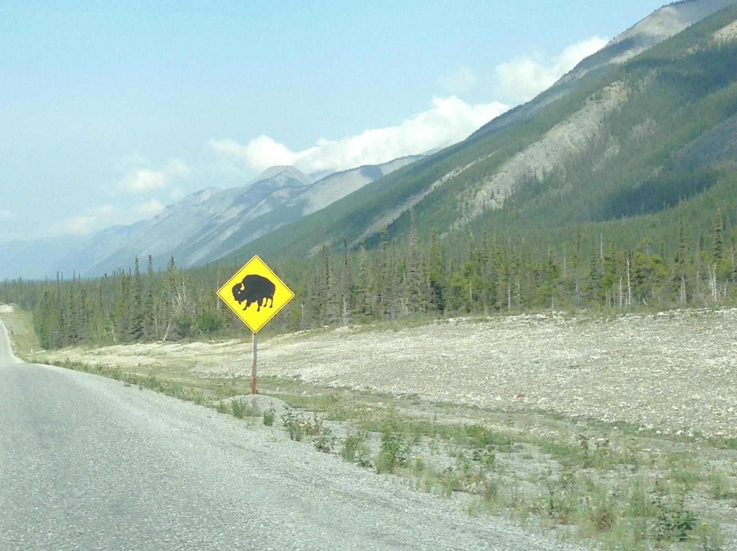 One of the wheels on my car had been slowly leaking air. Being the consummate auto mechanic that I am, I assumed this was merely a slow leak from a previous repair to the tire. And so, I stopped at Kaltire in Fort Nelson, British Columbia, to have it checked just in case something more serious was wrong. Turns out, something more serious was wrong: I had a nail in the tire, unrelated to the previous tire puncture. So, perhaps, I am not the someone you want to rely upon when making car repairs.The first of four animal crossing signs in this post (I’m a little obsessed): This is the sheep crossing equivalent of the graphic picture warnings on cigarettes. Seriously, kids probably have nightmares after seeing this.Caribou crossing! This would probably be more effective as a warning without the bullet holes and with the graphic nature of the previous sheep crossing picture. I’d suggest involving Santa and one of the reindeer for the full disturbing effect in a graphic sign. If nothing else, every car carrying young kids would insist on going very slowly through areas with caribou.I’m pretty sure there is something wrong with this bison. I mean, this bison would not be able to walk in real life. Also? I am getting tired of all the bison warnings with no real bison to show for them.Here’s how this goes when I drive by this sign. “Wait a sec,” I think, driving by the sign, “did that deer have a penis?…I think it did…maybe it didn’t…maybe it did…perhaps I should turn the car around and look…no, I can’t do that, who turns a car around to see if a deer on a sign has a penis?…ah, well, what else am I doing?” At which point I turn the car around, and discover that I was correct. The deer does, in fact, have a penis.The scenery on this part of the drive was stunning. So stunning, in fact, that it looked fake.Or like a car ad.Muncho Lake: so beautiful it looks good even when I take its picture. The lake is the color of the Caribbean. It is not, however, the same temperature as the Caribbean, which is probably why you’ve never heard of it.A picture of Liard Hotsprings. Like a giant hot tub in the woods.Or, if you prefer, the kind of hot tub where people have been killed by bears. Note: I took these pictures from the same place, just turned in different directions.