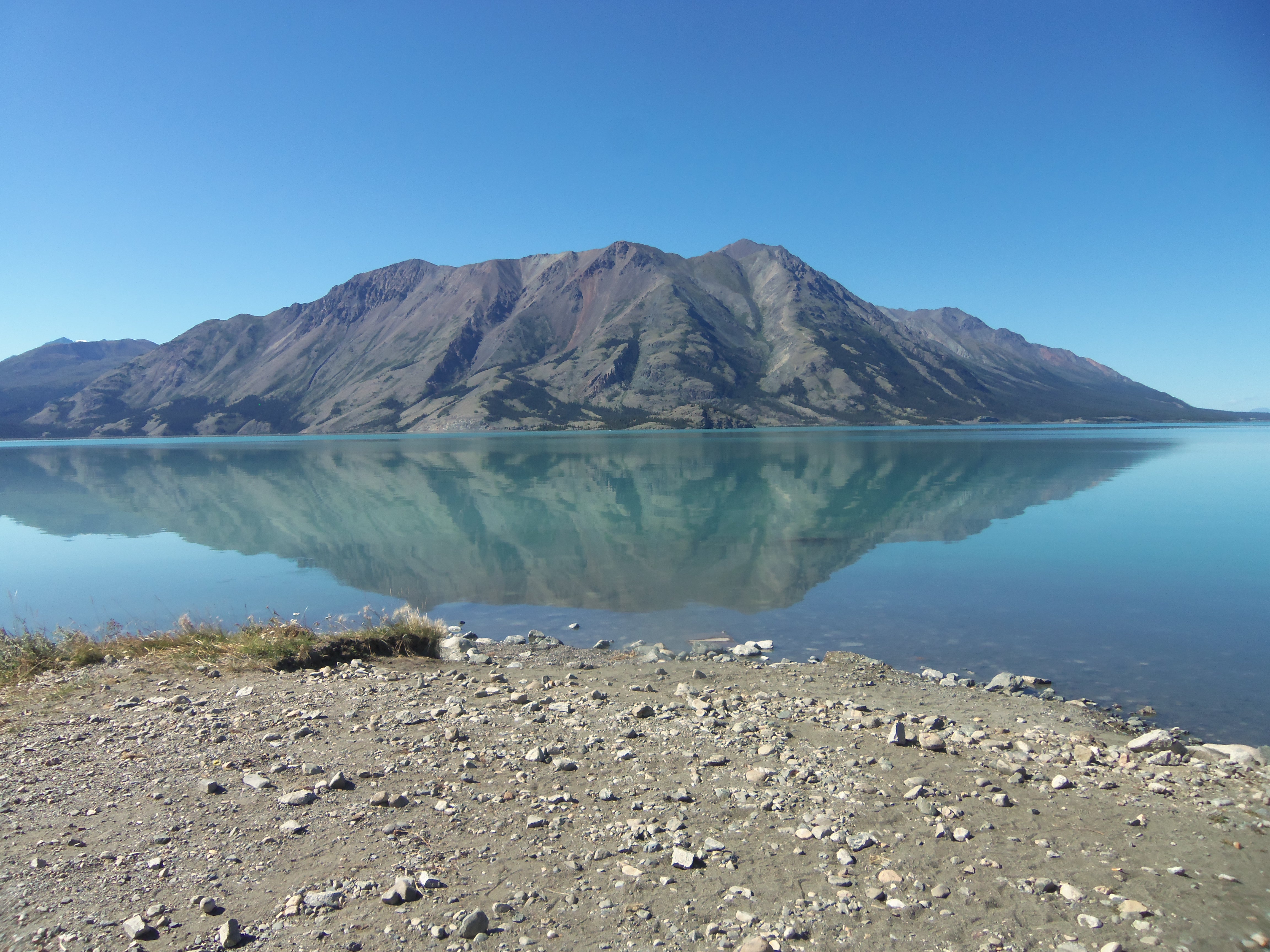 After a couple days in Whitehorse (one of which was unintentional, thanks to the broken finger), Choppy and I headed to Destruction Bay. Perhaps the choice of the place to stay based on name alone was not the best, considering the events preceding it; however, our night on the shores of Kluane Lake – the largest lake contained entirely within the borders of the Yukon Territory – was uneventful (happily so after the Whitehorse excitement).