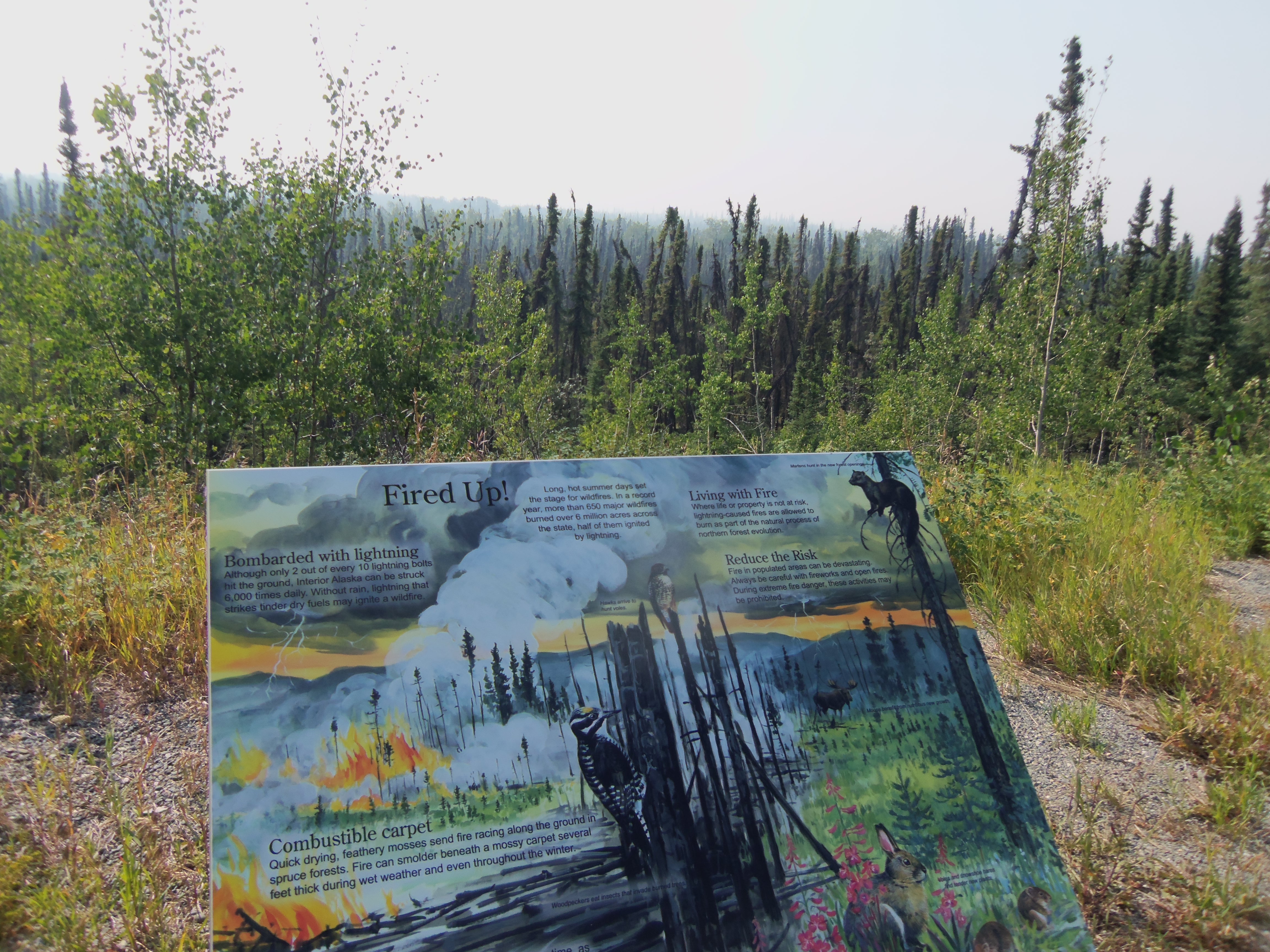 This (prescient) sign illustrated a forest fire. Which, it turned out, was what Choppy and I were headed straight into.