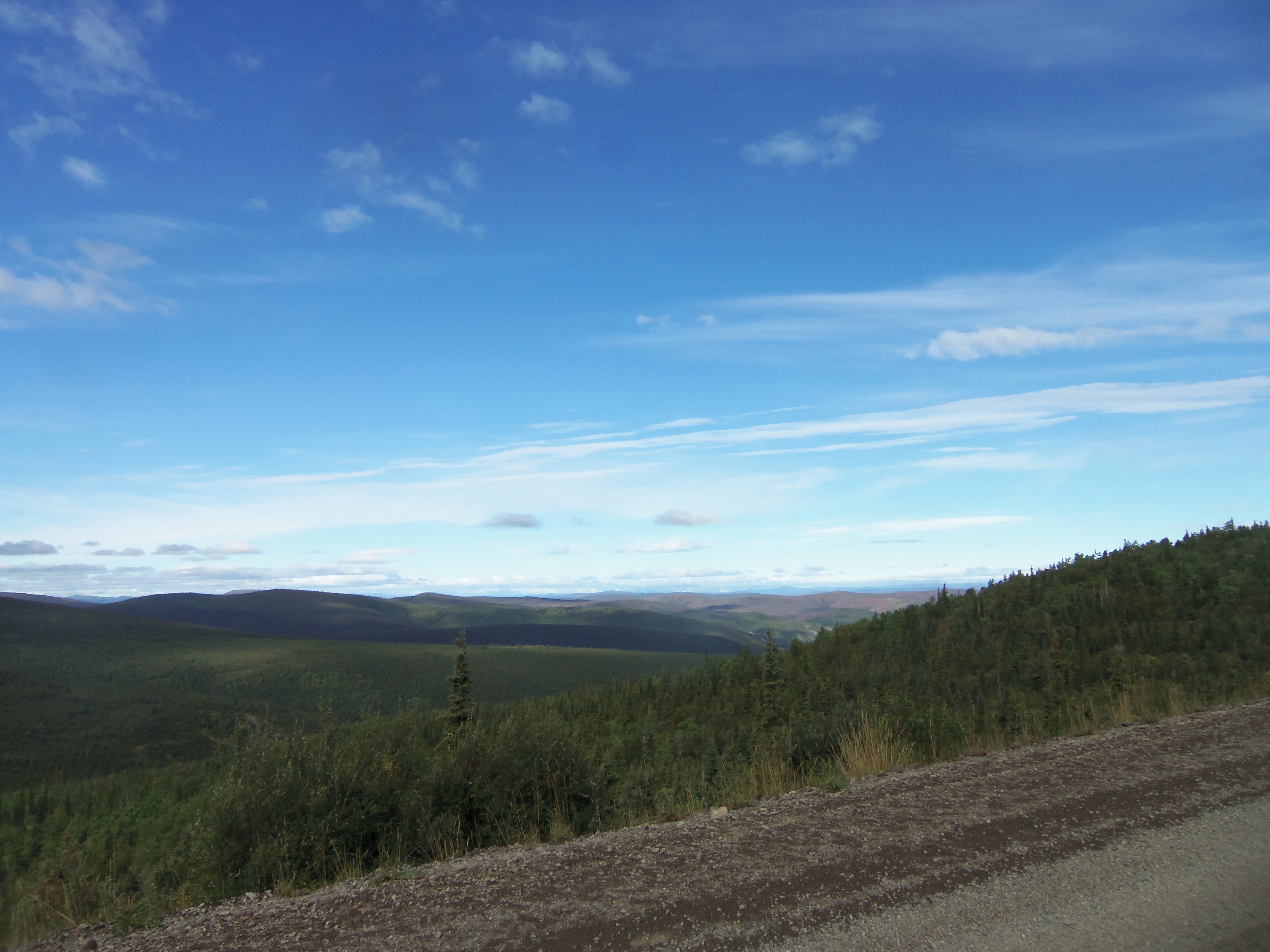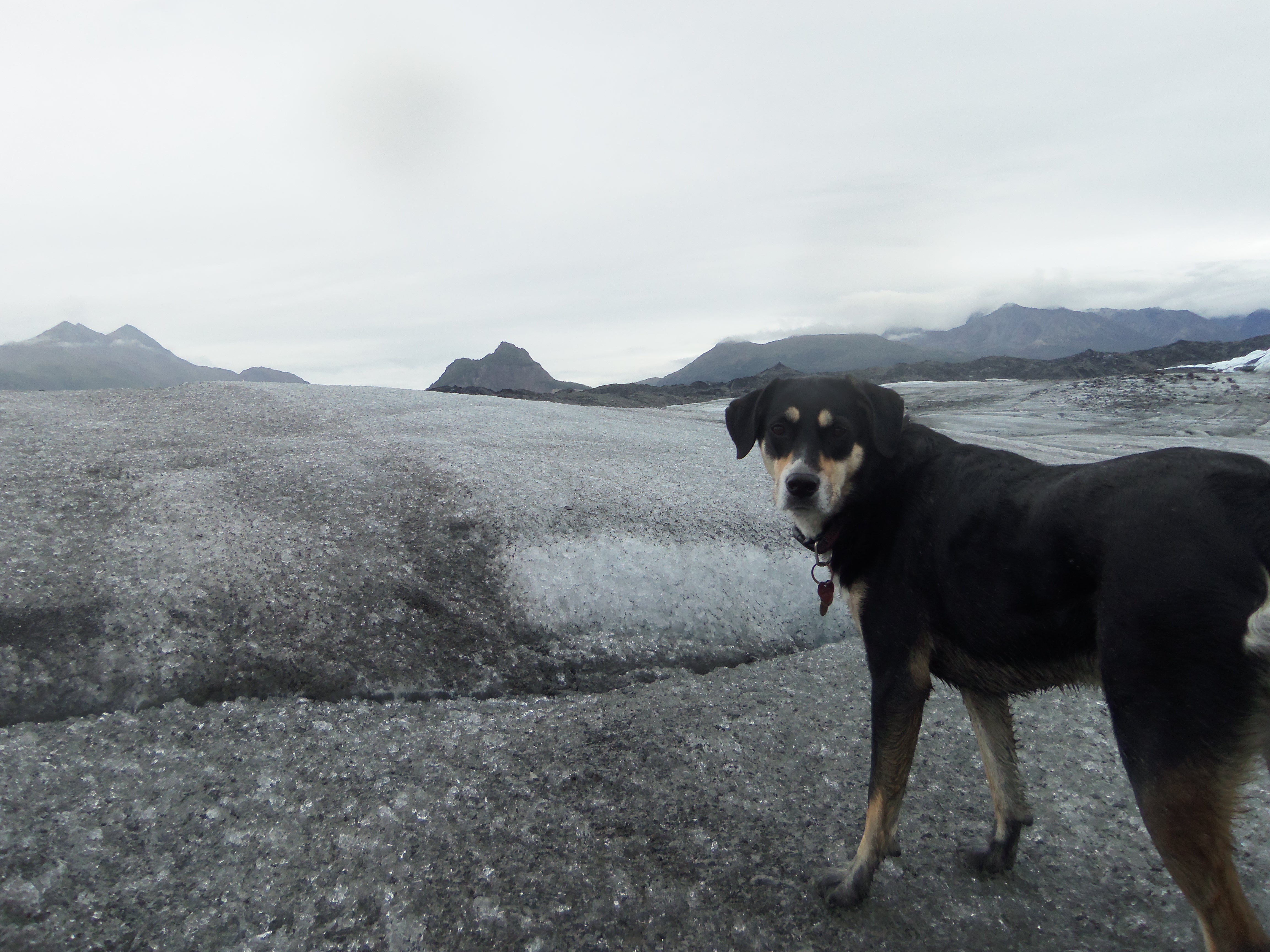 This is the view I get on our walks. Beautiful scenery and dog butt. It does leave something to be desired.Climbing on a glacier is pretty cool (pun intended. Just like when I made the exact same joke in the previous post). It’s also far dirtier than I expected, which you can see from Choppy’s feet. At this point in the trip, I had stopped caring how dirty Choppy was.With my sister back in Minnesota, it was back to taking pictures with the tripod. Note my choice in footwear for this glacier climb. Those sandals were definitely not glacier-appropriate. Also? Walking on a glacier is slippery. You’d think someone who grew up in Wisconsin and is thus very familiar with ice would realize that walking on a giant sheet of ice would be slippery. On this point, you would be wrong (well, at least as it pertains to me).One thing I didn’t expect in Alaska: swans. Specifically, wild swans. They were everywhere, and yet I never got tired of seeing them.Choppy and I headed up to Chicken as we left Alaska. While we saw many chicken-related items while we were there, we did not see any real, live chickens. Key West, it is not.That it is not Key West was further confirmed by the temperature. It was August 24. Also? My car really needed to be cleaned at this point.On our way home, Choppy and I drove the Top of the World Highway, a gravel road in the Yukon that is almost entirely above the tree line. For a place without trees (and with a horrendously low temperature), it was gorgeous. Though I was happy to come down out of the mountains and warm up.