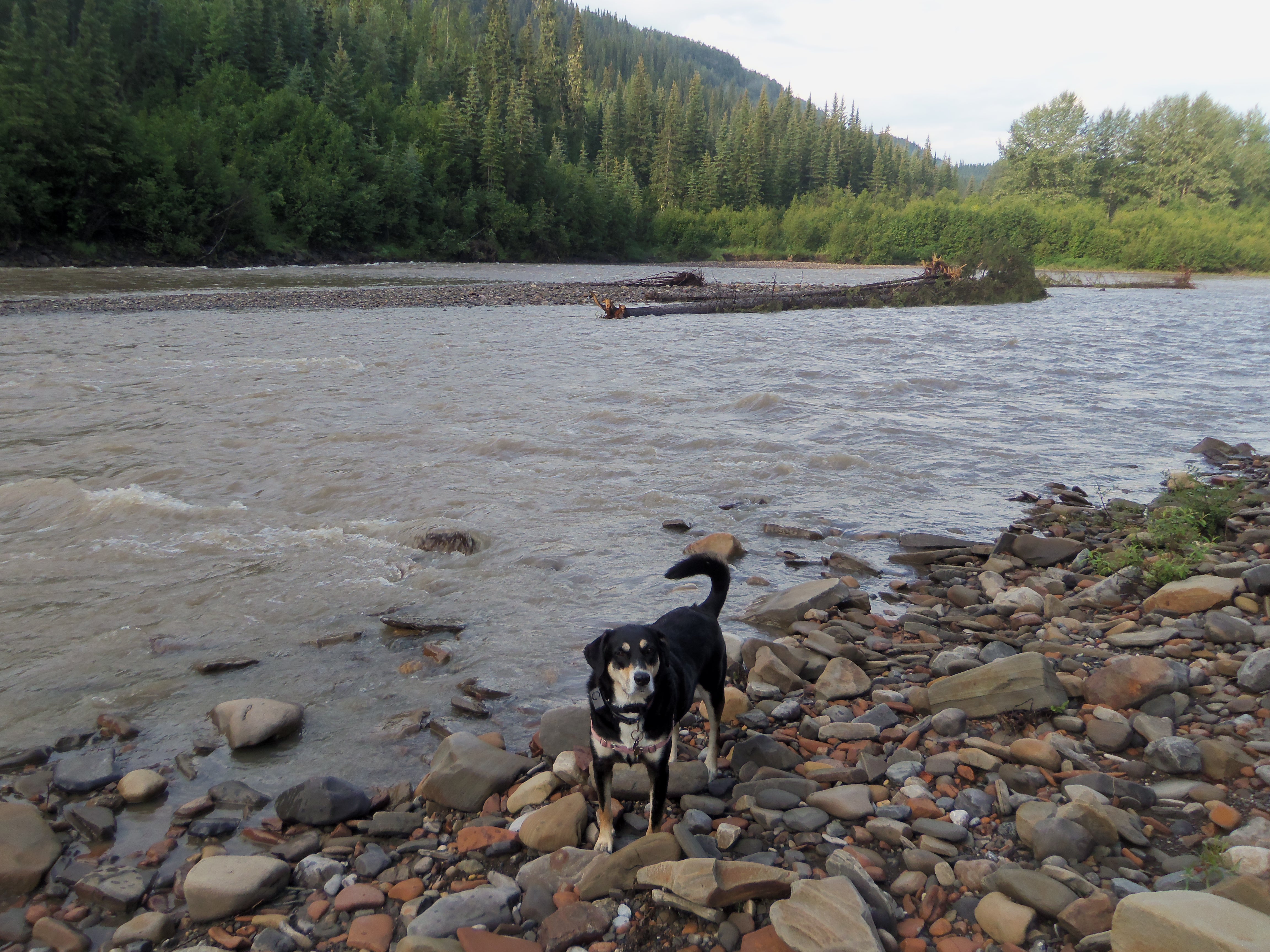 Choppy enjoying a little time next to the Sikianni River in British Columbia. This was on our trip up the Alaska Highway. I was going to make a snide remark here about the weather along the River today, and then I realized it is actually colder here than it is there. Well played, Canada. Well played.