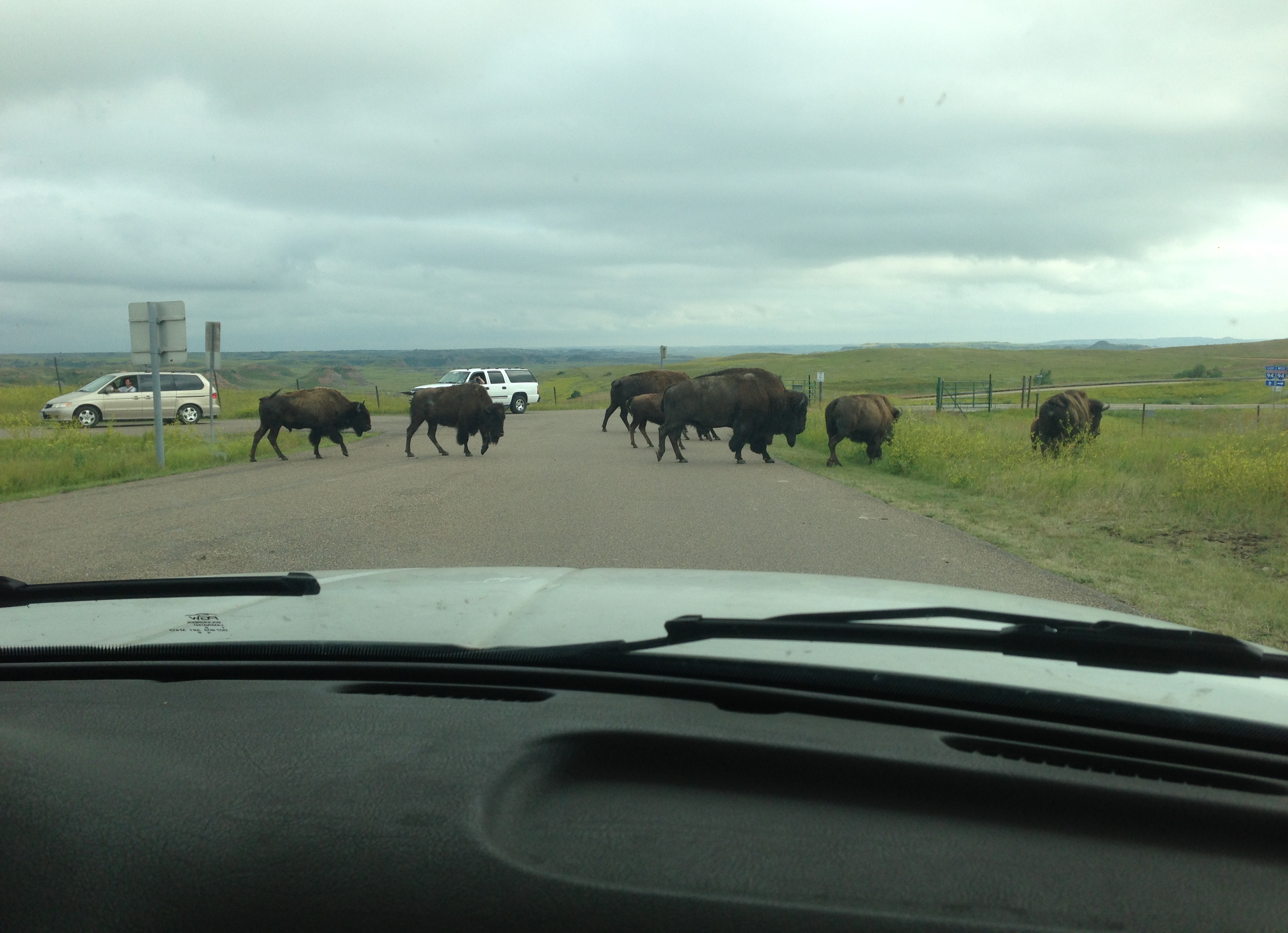 Apparently, the sign was on to something. As we left the rest area, there were bison everywhere.
