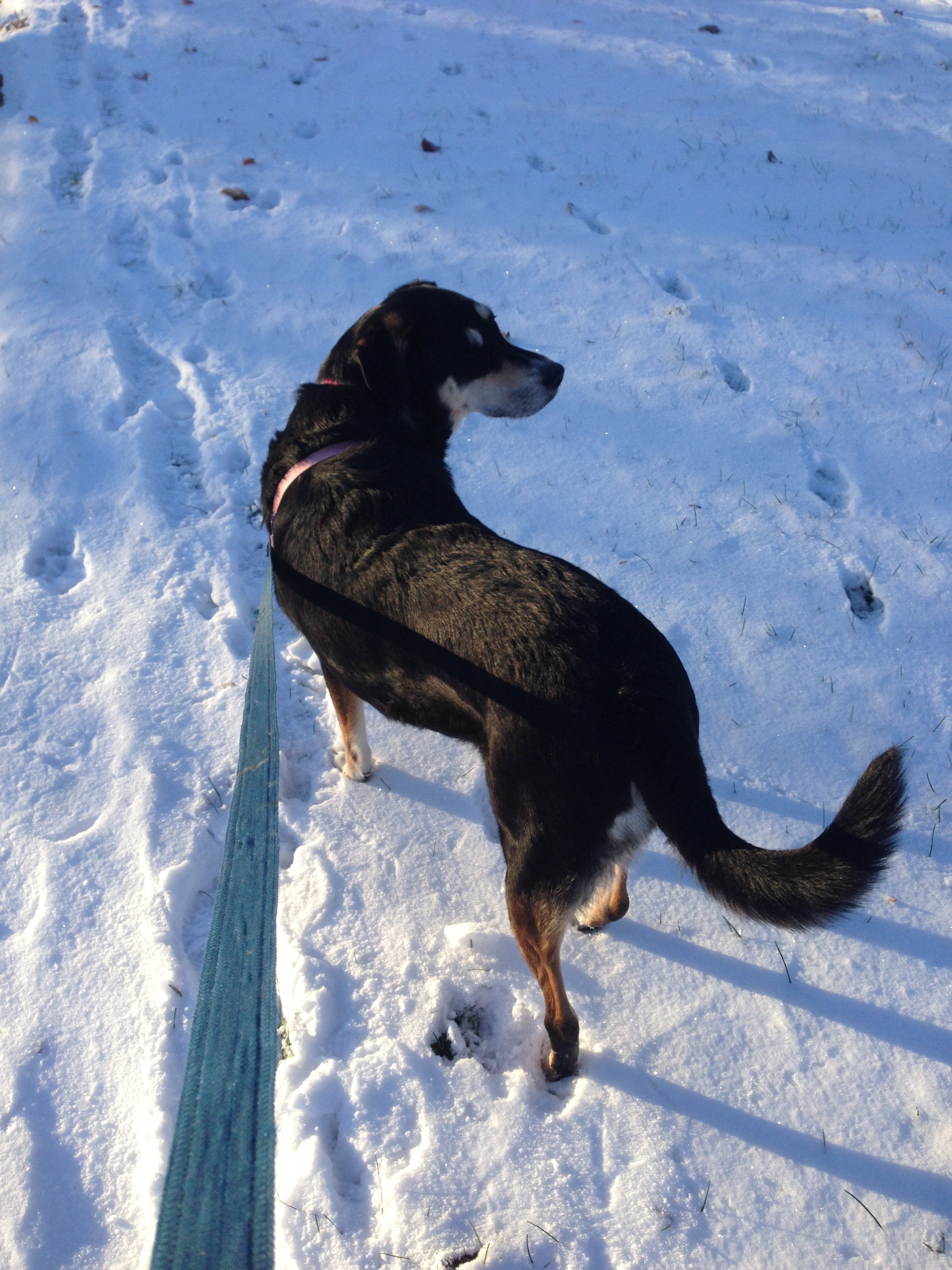 It may be snowy, but the squirrels don’t care. Meanwhile, I am hoping they start hibernating soon, so I can speed up our walks (because, despite having seen thousands of them over the course of her lifetime, Choppy always wants to stop and look at them).