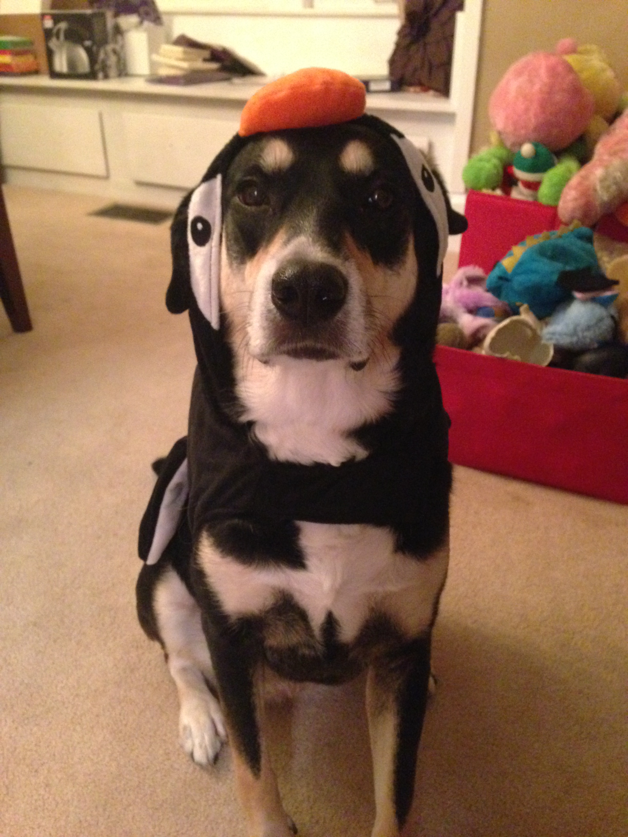 I know, you’re incredulous. What kind of dog enjoys dressing up? In case the pictures aren’t enough, I had Paul take a video of the process: