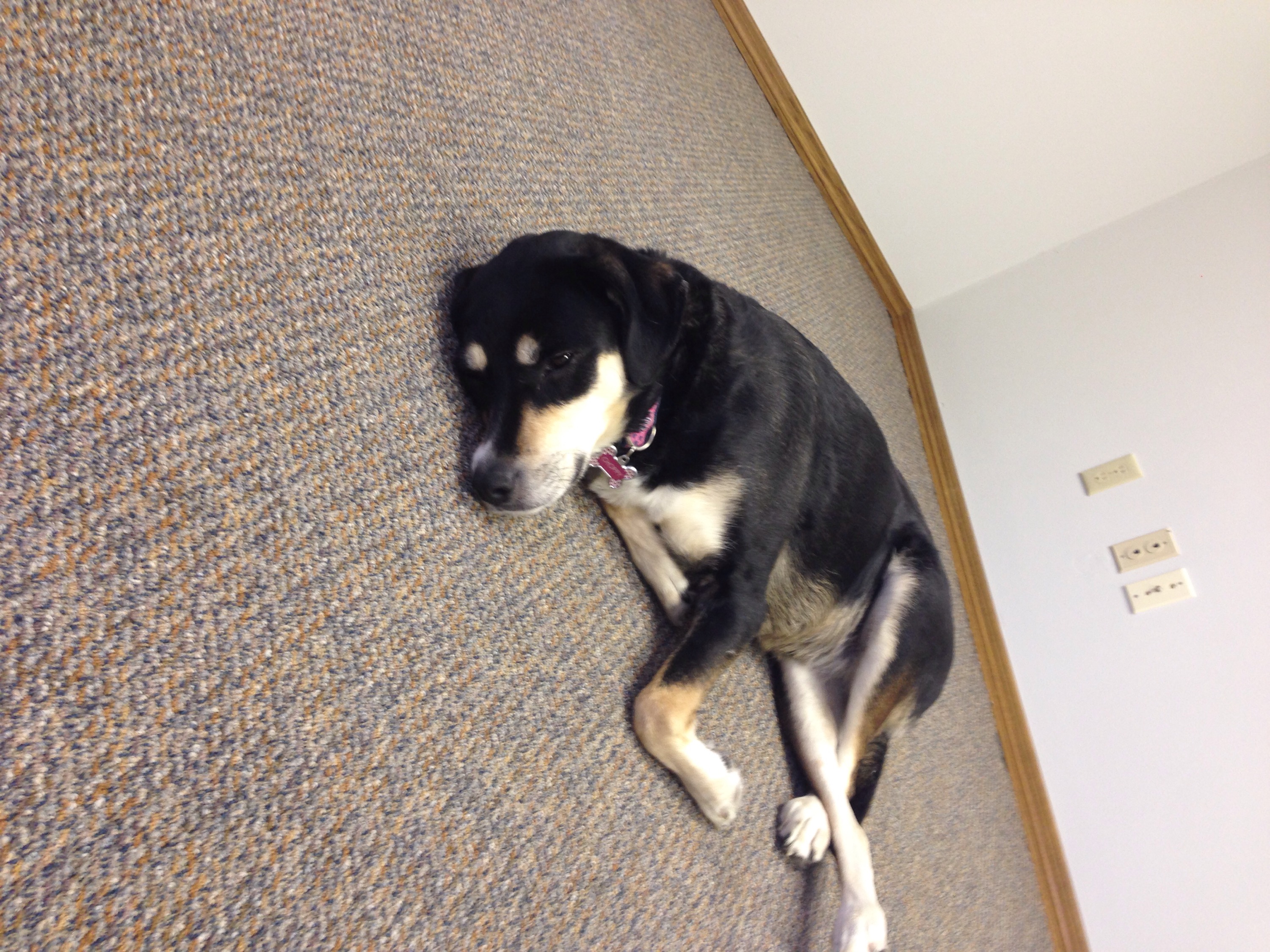 It appears Choppy is getting rid of the new carpet smell for you. Very considerate dog!