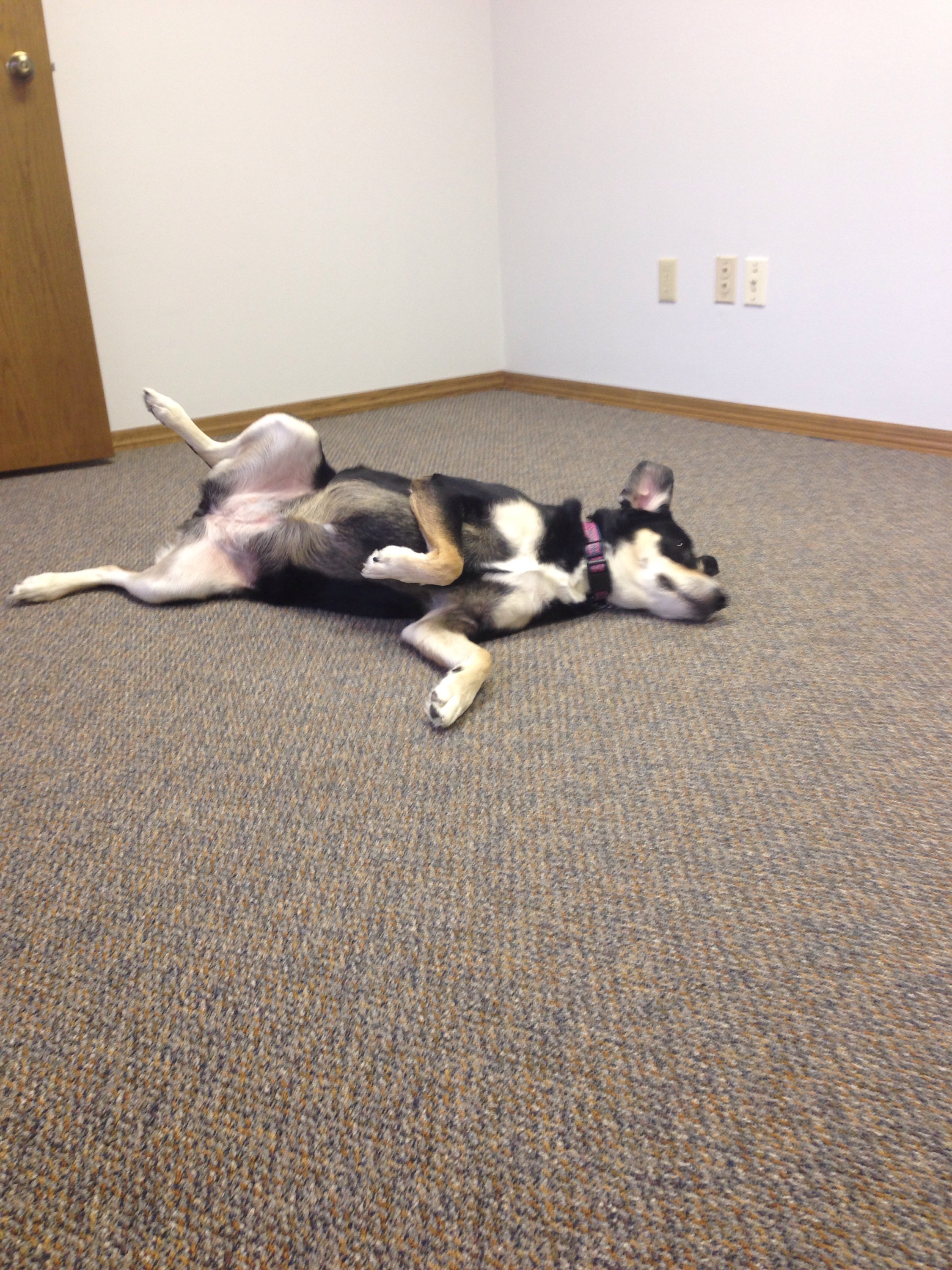 Choppy seems to settle in everywhere! Love the pictures of her rolling so happy on the new carpet!