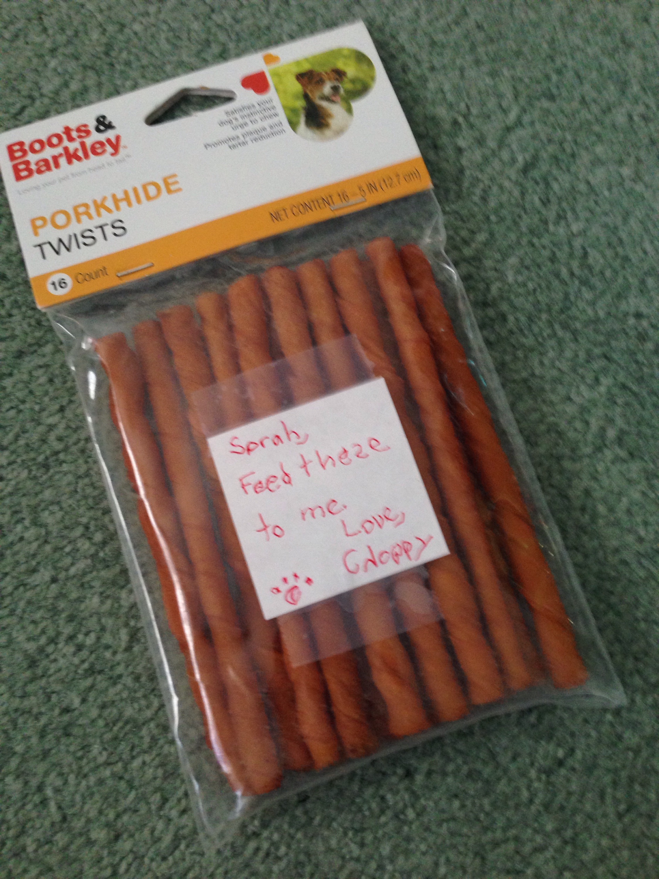 Smart move by Choppy. She did a very good job wrapping that gift considering that she doesn’t have opposable thumbs.