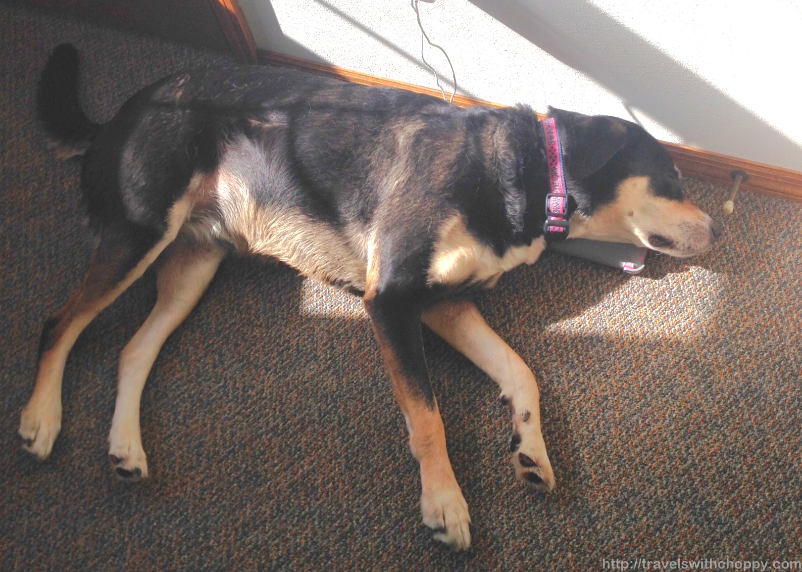 Choppy: Not a cat. Based on her desire to sleep in the sun (note her lying on the iPad), you would not know this.This is an outtake from the treat post. Choppy was not going anywhere with the prospect of treats, hence the stare.Slowly but surely, the snow is melting. I would prefer it melted in a much faster manner.I wish I could take as many naps as Choppy does.This? Not Choppy’s most ladylike pose.