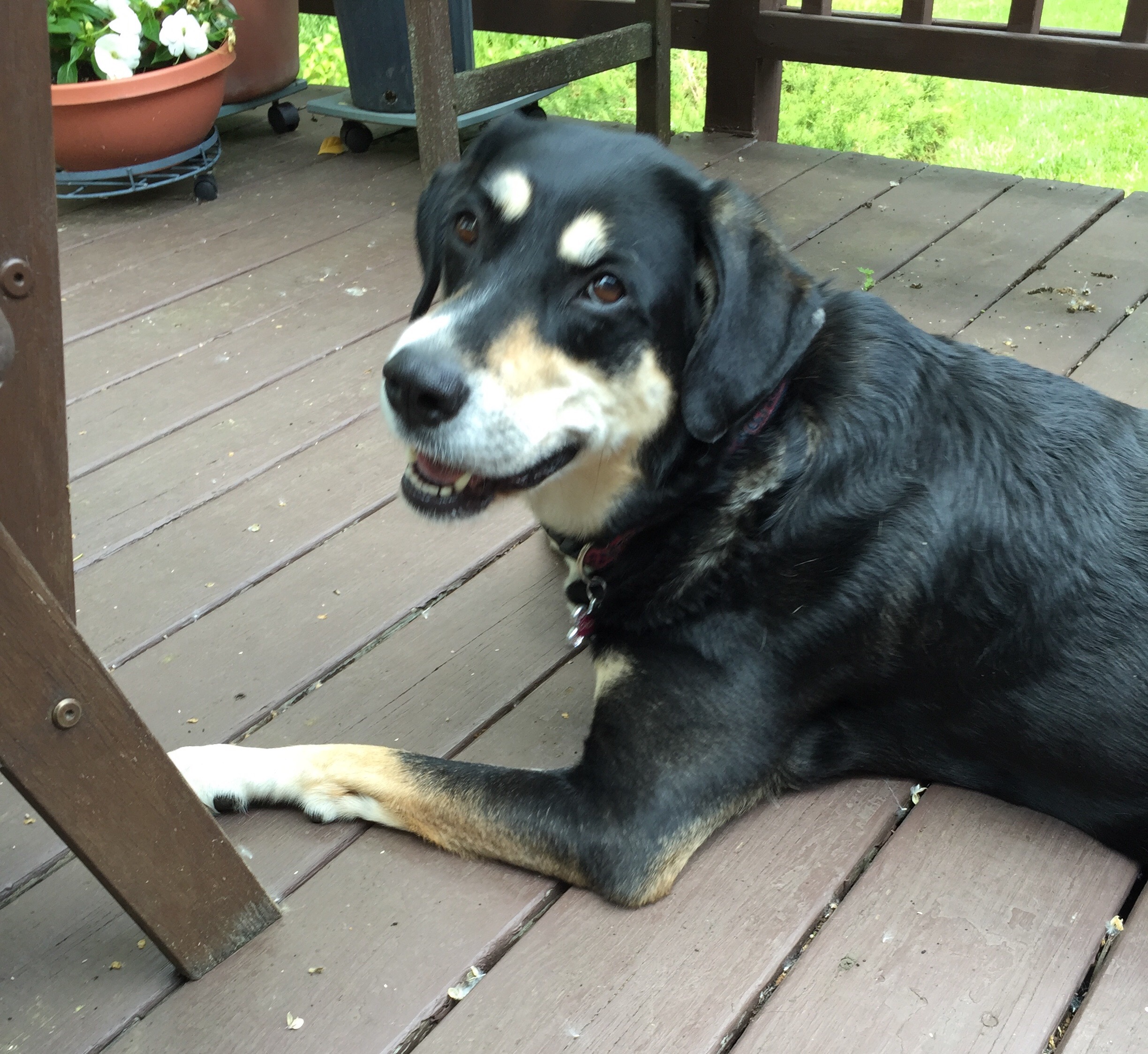 If you read Friday’s post, you know that Choppy and Izzy got to spend the weekend together at my parents’ house. Things did not start off well; I hadn’t even left on Thursday morning and the two of them had already gone to bully the neighbor dog who is stuck on a run. By Thursday afternoon, Izzy had been picked up by a neighbor she and Choppy were “visiting,” necessitating calls to my brother and sister-in-law in Chicago and a retrieval by my less-than-happy mom.