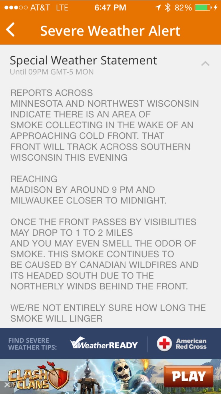 Even worse, it’s not like there is any helpful advice here. Basically, this weather warning says, “here’s a strange weather thing that has never, ever happened before. Good luck!” As if the lack of a warning wasn’t enough, the alert also makes an affirmative statement about the lack of knowledge on the part of the meteorologists when it notes no one knows when and how this smoke will disappear.