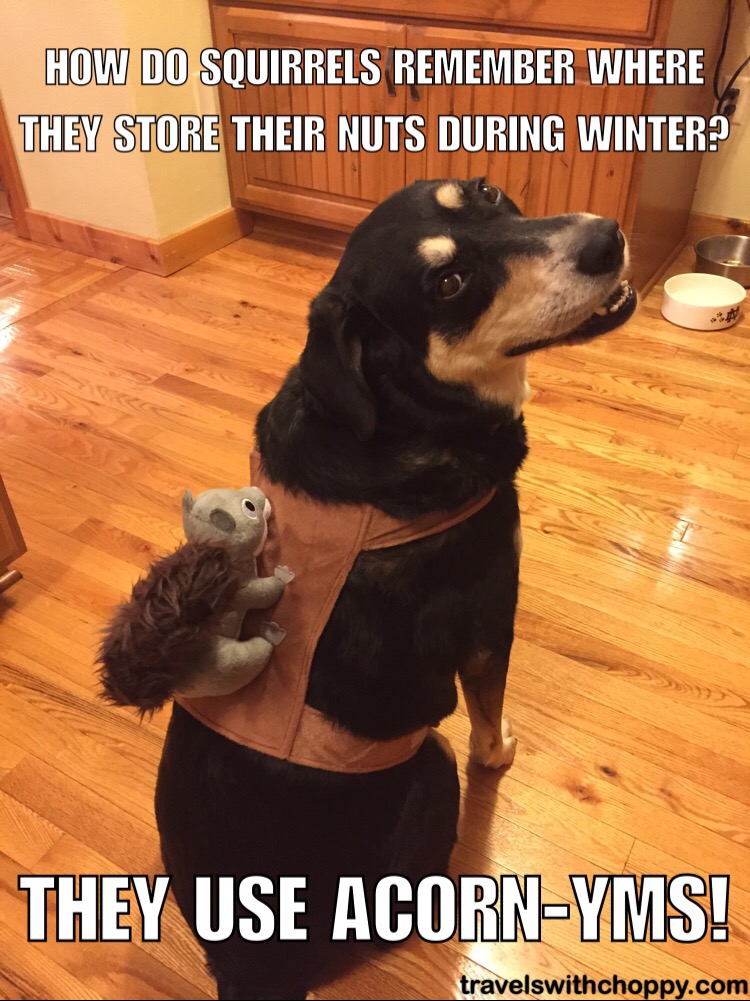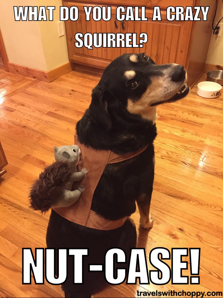 “Almost un-nut-ural” – Gee Choppy knows how to make us laugh!!! 😀 That squirrel on her is just the cutest and I wonder she even wear that outfit outside. If she has never worn, you really should make her wear it outside. I bet she will have a world of attention 😉 Good job Sarah! ❤