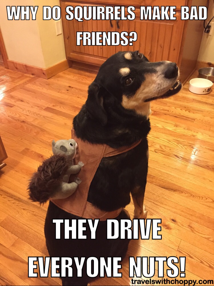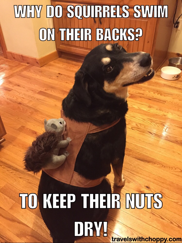 Oh dear. Is it sad that I’m laughing at these jokes? That squirrel on Choppy’s back is priceless. Very funny.