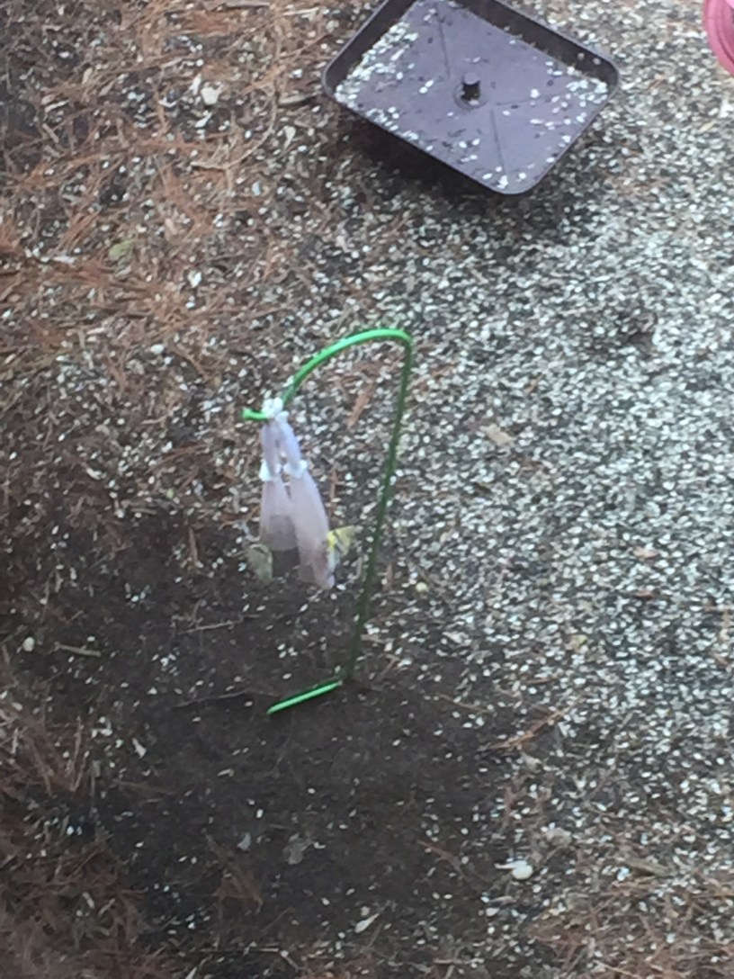 The goldfinches have started to turn back to yellow! They’ve been around all winter, but the males have been missing their vibrant colors. You can see a female on the left of the thistle sock and a male who is partially yellow again on the right. Also? I need to add “rake the sunflower husks up” to my weekend task list.