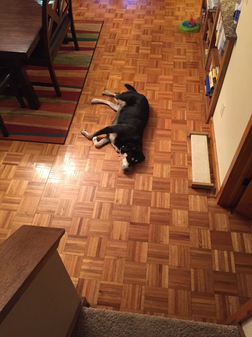 It doesn’t seem like it – she does have a giant backyard to wander when she doesn’t get out for the second long walk. Not as good as a walk, but not bad, either!