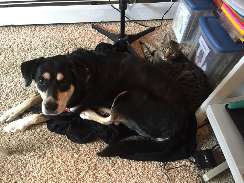 Not pictured: Choppy looking annoyed with Schooner for sitting down so close to her.