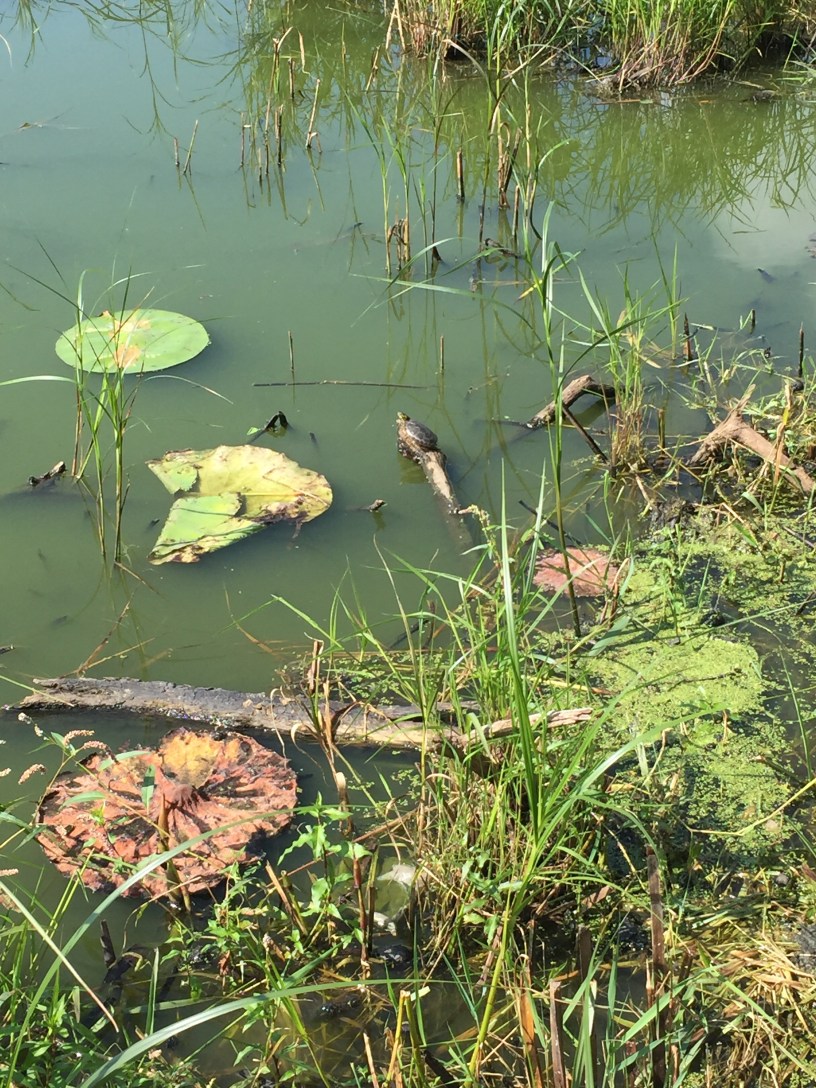 A wee turtle on a log – he scooted before I could get a closer look at him for you.