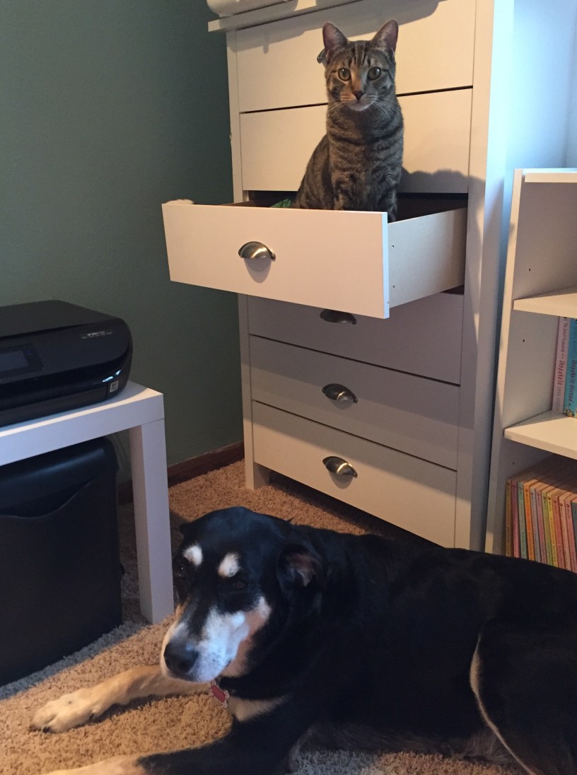 Howlidays Howlidays: Get Organized Week Date: October 3, 2017Author: Sarah Ferguson and Choppy 37 Comments I’m pretty sure putting the cat away in the dresser is not what is meant by Get Organized Week, Choppy. Share this: Click to print (Opens in new window) Print Click to email a link to a friend (Opens in new window) Email Click to share on X (Opens in new window) X Click to share on Facebook (Opens in new window) Facebook Click to share on LinkedIn (Opens in new window) LinkedIn Click to share on Reddit (Opens in new window) Reddit Click to share on Tumblr (Opens in new window) Tumblr Click to share on Pinterest (Opens in new window) Pinterest More Click to share on Pocket (Opens in new window) Pocket Click to share on Telegram (Opens in new window) Telegram Click to share on WhatsApp (Opens in new window) WhatsApp Like Loading...