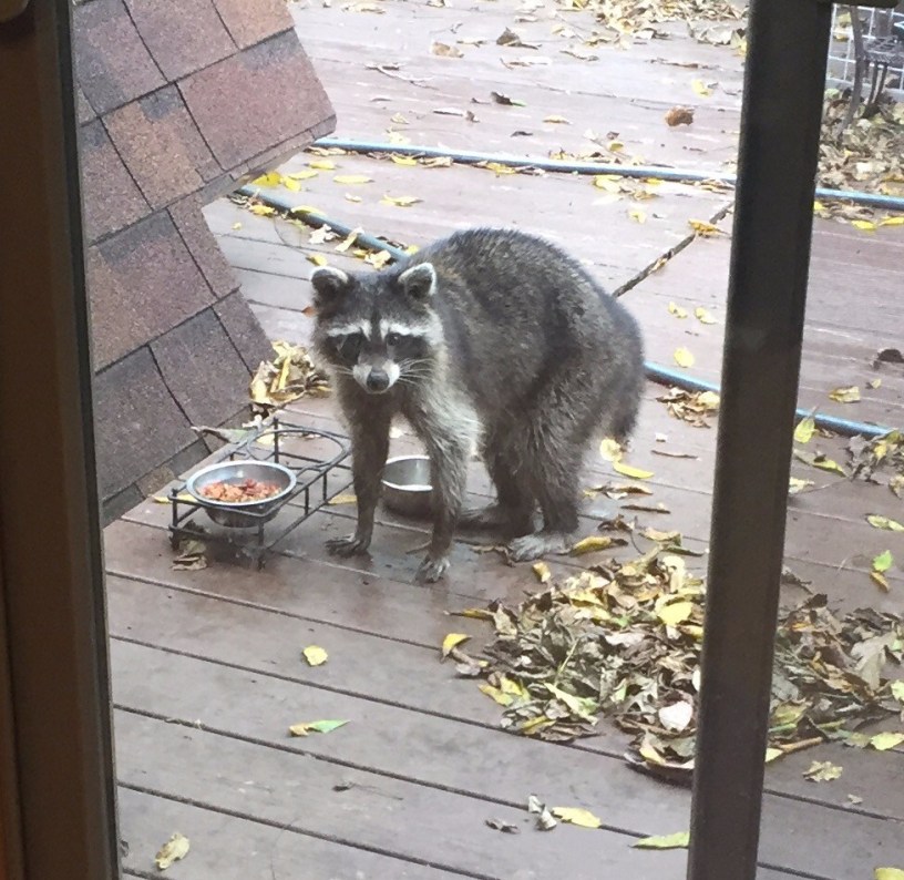 Cat food, raccoon food – same difference, right? At least if you’re this guy.