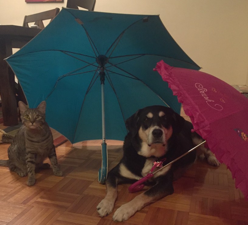 I’m not sure those two should have those umbrellas open in the house. If it’s bad luck, they’ll likely be forced to dress up even more than they are already required to.