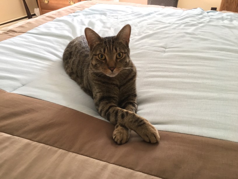 He does love it when he can just relax on our bed (though he loves it most when the sheets are off and getting washed – I don’t know why, but he does).