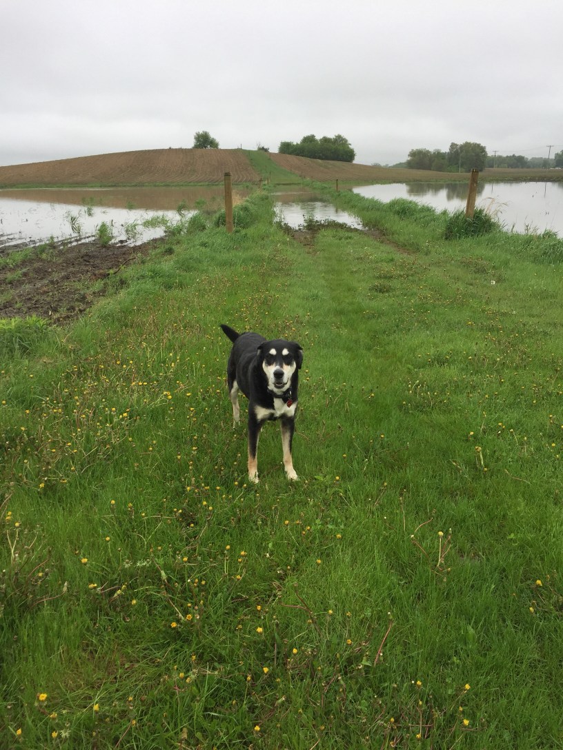 One of the rainy walking days – as you can see behind Choppy, we’ve been flooded out of one of our walking paths lately (up on top of the hill is Potter’s Field, which we have previously talked about on the blog).