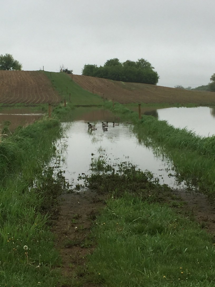 It’s interesting how ducks find puddles of water after the rain instead of staying on a pond or in a creek or river. I’d think they’d rather be where there were fish to eat. (I assume they eat fish. Perhaps I should look up duck diets. LOL)