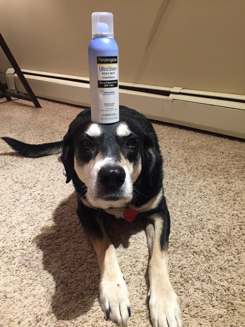 A dog who gets sunburned?! I guess all the dogs I’ve ever had are black with lots of fur, so it’s never been an issue.