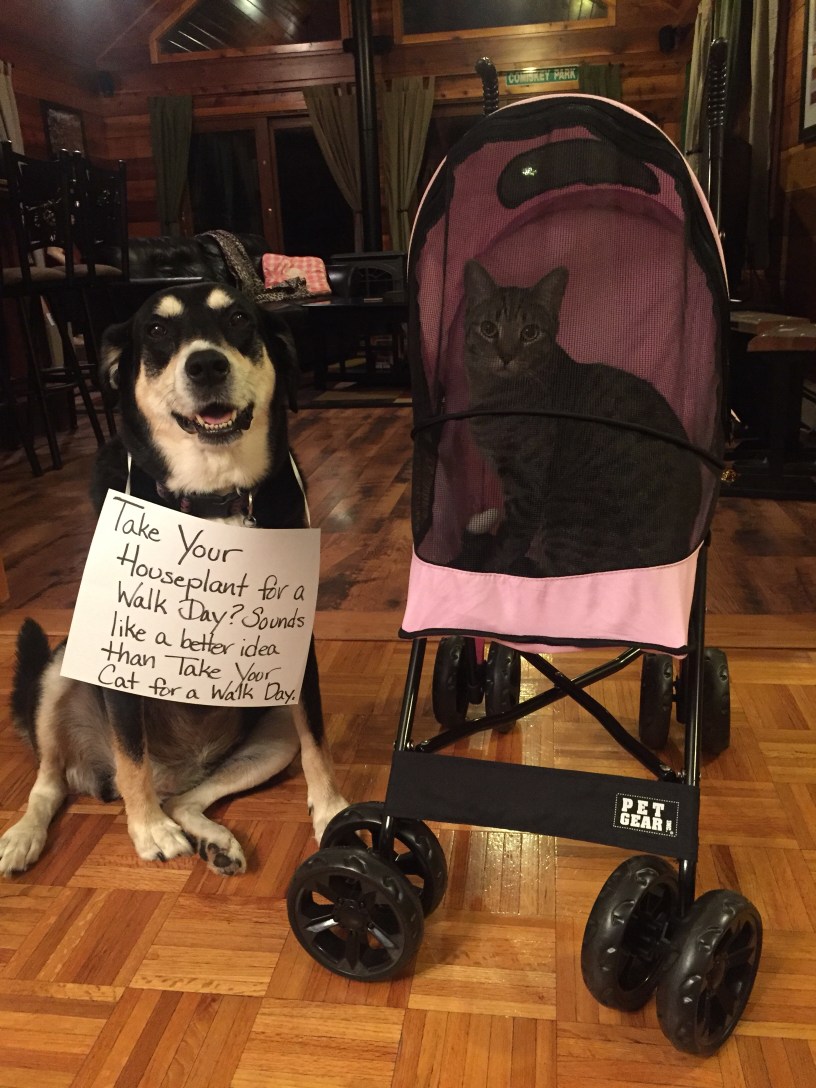 A houseplant really would be easier to walk than a cat. Even with a stroller.