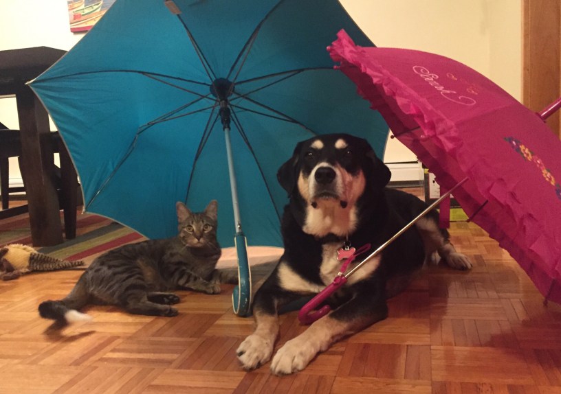 That’s an awfully large umbrella for Schooner. I guess he really doesn’t like the rain.