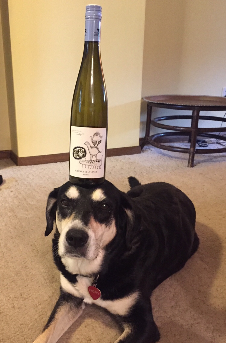 Do not worry – we did not use a bottle with any wine in it. We wouldn’t want Choppy to drop something like that and cause a wine crisis.