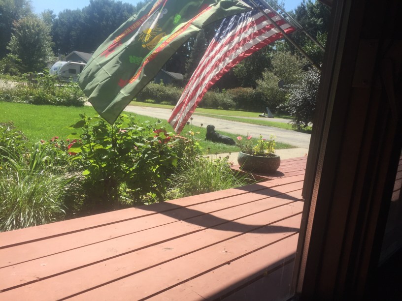 Choppy, enjoying some sun and keeping an eye on things in the front yard.