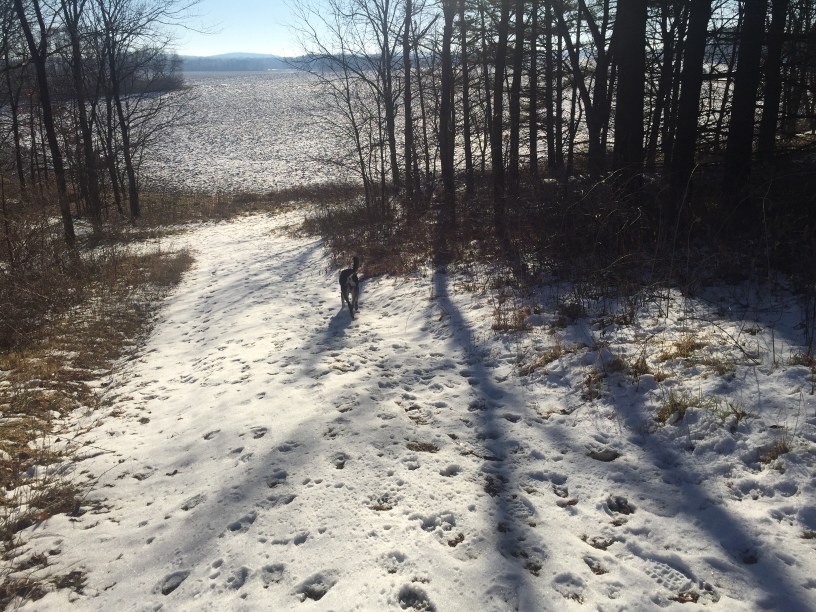 Tricky footing this time of year! Lovely walking trail you get to enjoy, with lots of room for Choppy to roam.