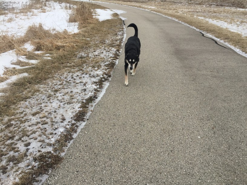 On the plus side, we got an outside walk in on Sunday – this is the non-icy portion of it. I *may* have had to slide on my rear end for part of the walk so as not to slip and break something.