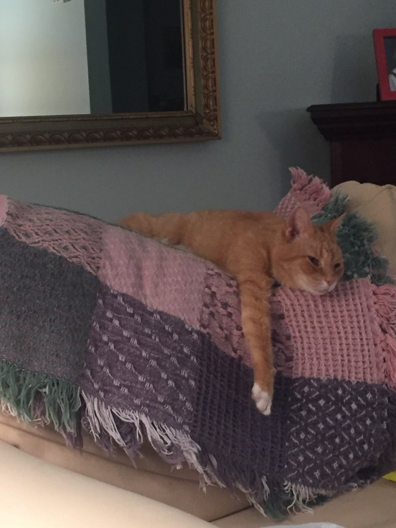 We spent last weekend in Pennsylvania – so expect some Pennsylvania pets for a few days. Here’s Sparky, disturbed from what I can only assume was a most-excellent nap.