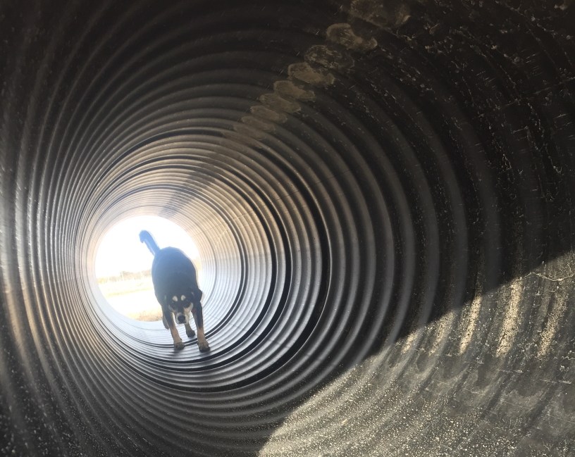 They were doing some construction work near where we normally walk this week. They left some giant tubes out one night, which I decided was a perfect chance for a fun photo!