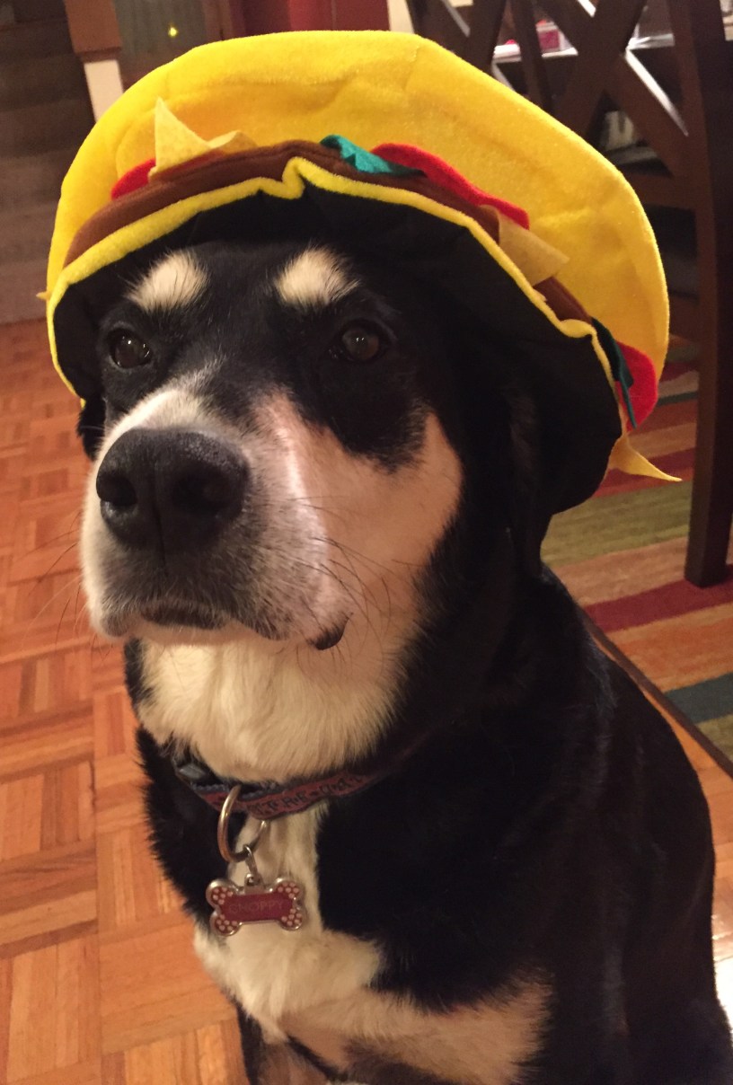 Happy Hamburger Day! For once, I think Choppy wishes she had to balance something on her head. At least that way, she would get to eat something!