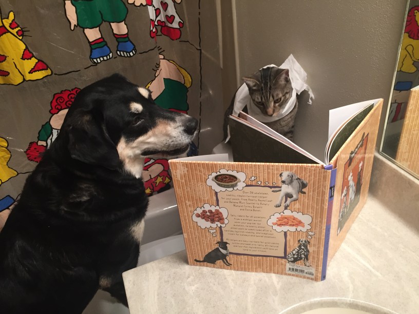 Schooner looks very interested! Choppy looks like she sees a photo of a 🥓🍔 burger or a 🥩.