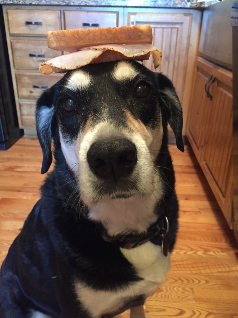Glad she got to eat this prop. It would have been really sad if she didn’t. I agree with Alice, though. It does need some bacon to make it complete. BTW, once again she is showing amazing restraint! WTG Choppy!
