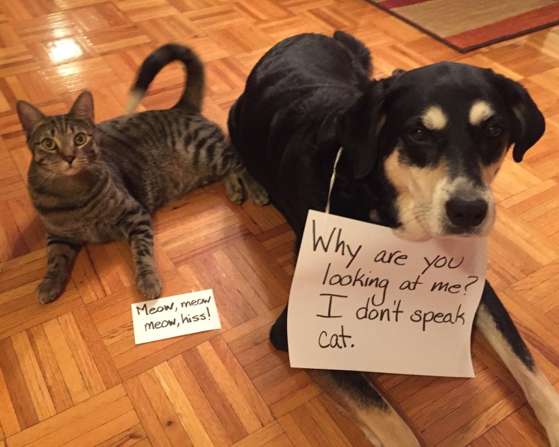 Howlidays Howlidays: International Translation Day Date: September 30, 2019Author: Sarah Ferguson and Choppy 5 Comments None of us speak cat around here. If we did, we could more easily avoid his bad moods. Share this: Print (Opens in new window) Print Email a link to a friend (Opens in new window) Email Share on X (Opens in new window) X Share on Facebook (Opens in new window) Facebook Share on LinkedIn (Opens in new window) LinkedIn Share on Reddit (Opens in new window) Reddit Share on Tumblr (Opens in new window) Tumblr Share on Pinterest (Opens in new window) Pinterest More Share on Pocket (Opens in new window) Pocket Share on Telegram (Opens in new window) Telegram Share on WhatsApp (Opens in new window) WhatsApp Like Loading...