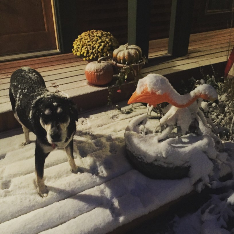 So…we had a little snow for Halloween – I took this picture on our morning walk last Thursday. Thankfully, it has melted. Well, mostly melted.