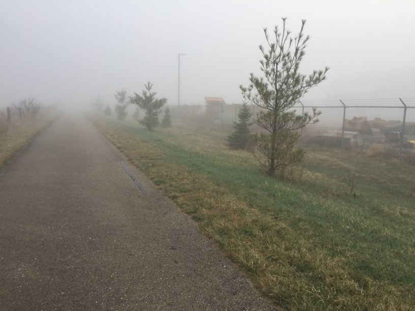 The picture this week? That’s from this (very foggy) Wednesday. Choppy may mostly be confined to her stroller on our walks, but when I do let her out, she takes full advantage of it – even letting me get in a “Where’s Choppy” shot!