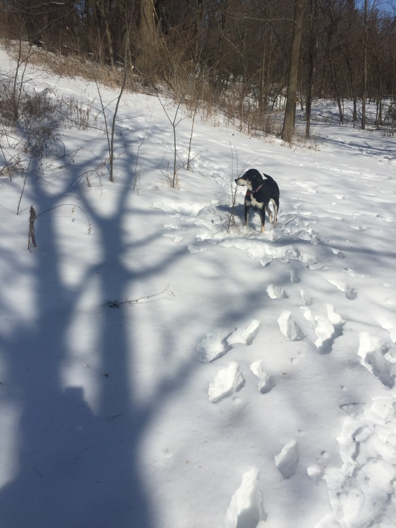 A throwback to winter (February 22) – Choppy was very intent on something in the woods at that moment. I’m going with a squirrel.