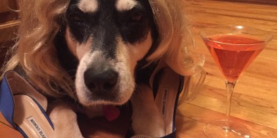 A dog and cat in clothing. Puns. Travel. Bacon. Not necessarily in that order.